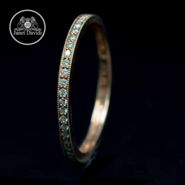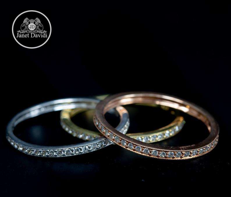 18 k Gold or Platinum Mill Grained Stackable Wedding Ring/Pave Set Diamond High Polished Mill Grained Narrow Eternity Wedding Band/Gold Ring