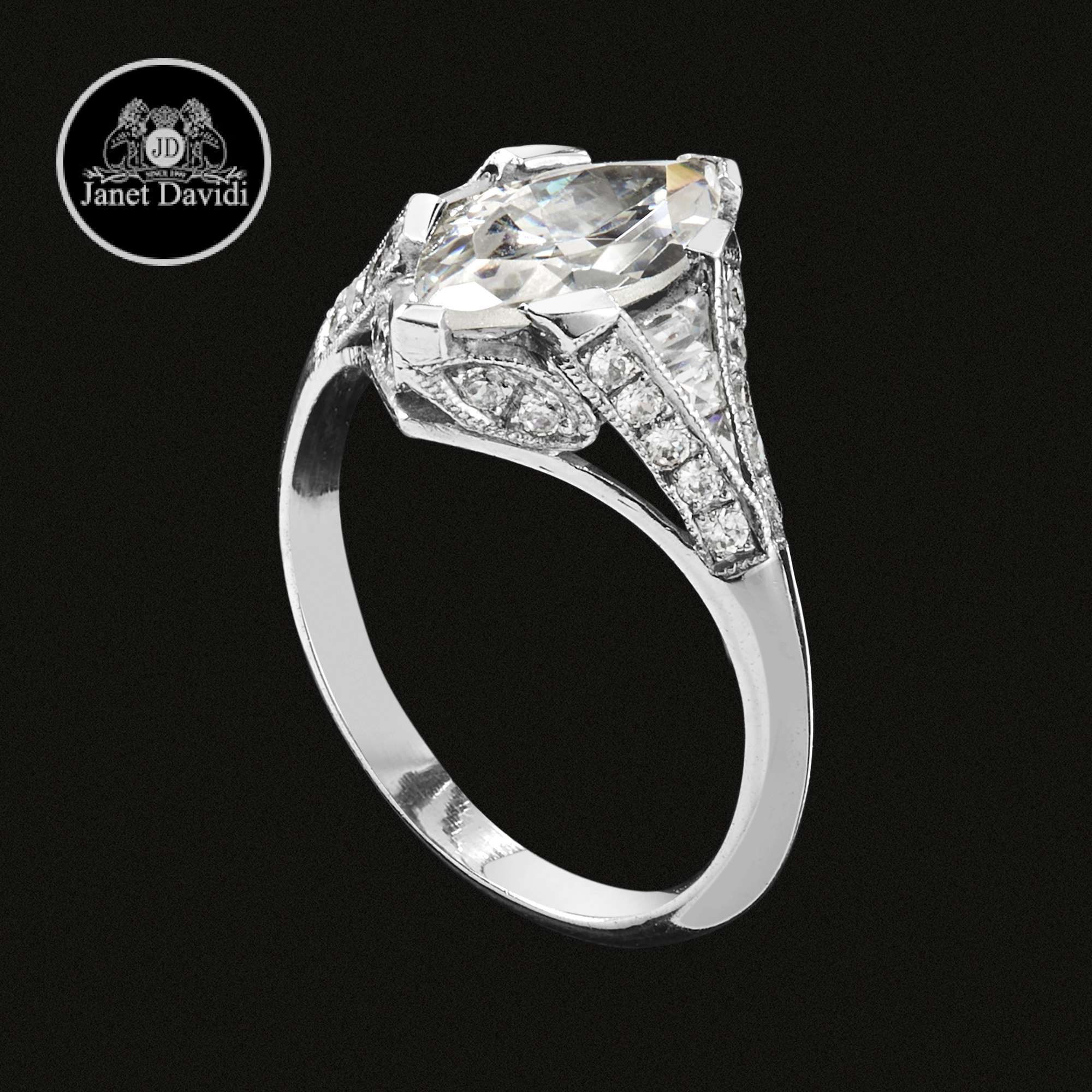 • Can accommodate a 14×7 (2.5 ct) mm marquise-cut center stone and can be made for larger or smaller stone please contact for pricing