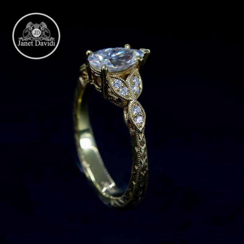 Edwardian Style Antique Inspired Engagement Ring/14 or 18 k Engraved and Mill Grained Diamond Engagement Ring/Setting Only For The Pear Cut