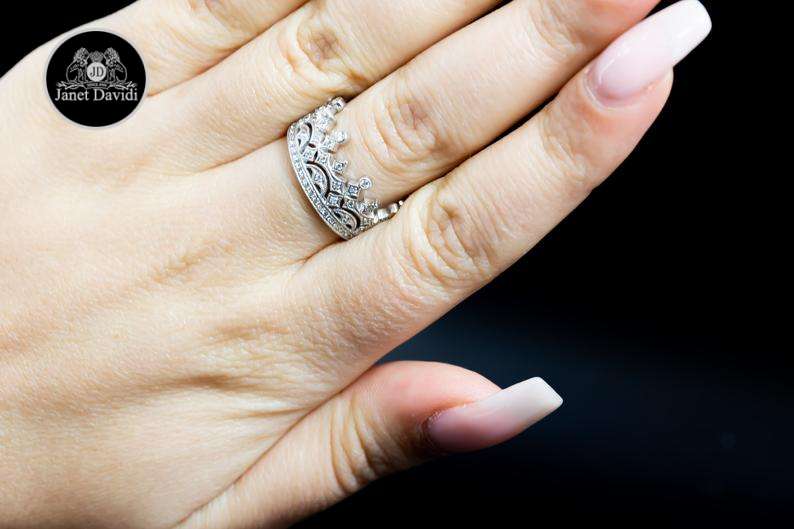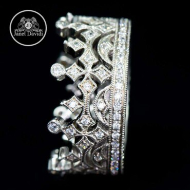 When our designer was creating this piece; she carefully considered each element of this ring. The ring was designed to be a reminisces of a royal crown. It is stately and will ensure your love she is your queen.