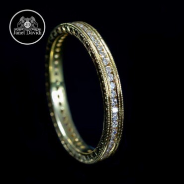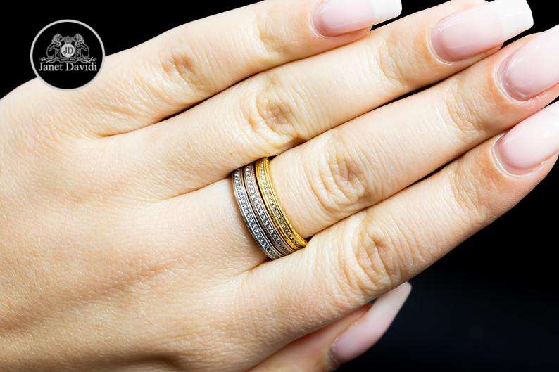 0.36 ct of genuine yellow sapphire Channel Set in a Hand Engraved and Mill Grained Stackable Ring,Available in 18 K white, yellow and rose gold simply add note to your order for desired gold color, for finger size 4.5 to 6.5 please contact if you need it for different finger size.