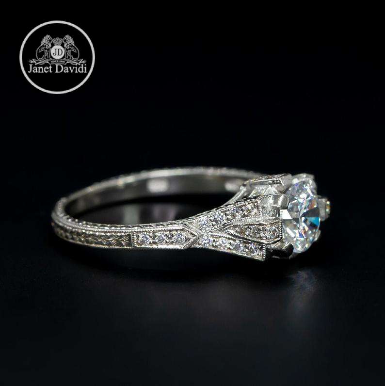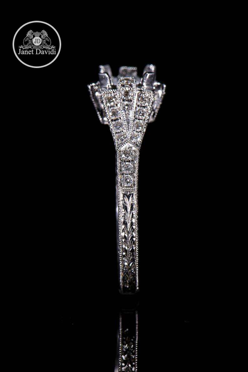 Art Deco Style Antique Inspired Engagement Ring/18K Natural Diamond Milgrain and Engraved Engagement Ring/Setting Only Semi Mount Ring 1 ct