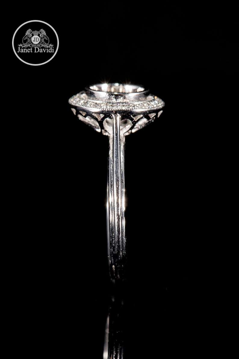Our sleek, vintage-inspired semi mount with halo includes milgrain detailing surrounding the center stone. This vintage ring is as classic as your bride to be. The matching band is not included, But it can be ordered separately for additional cost.