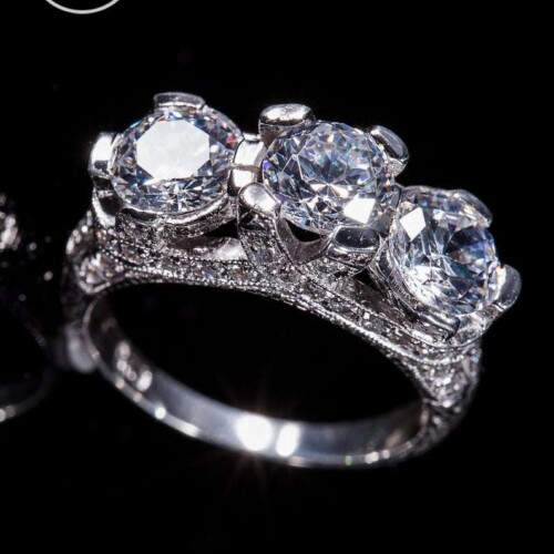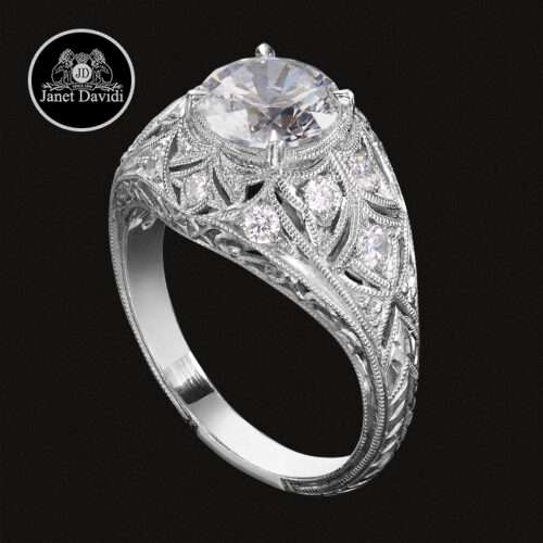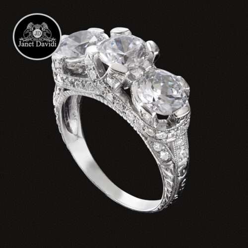 Antique Inspired 3 Stone Engagement Ring ID:11254