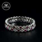 Micro Pave Set Diamond and Ruby Stackable Ring Detailed With Fine Mill Graining, price listed for one ring only (160d)