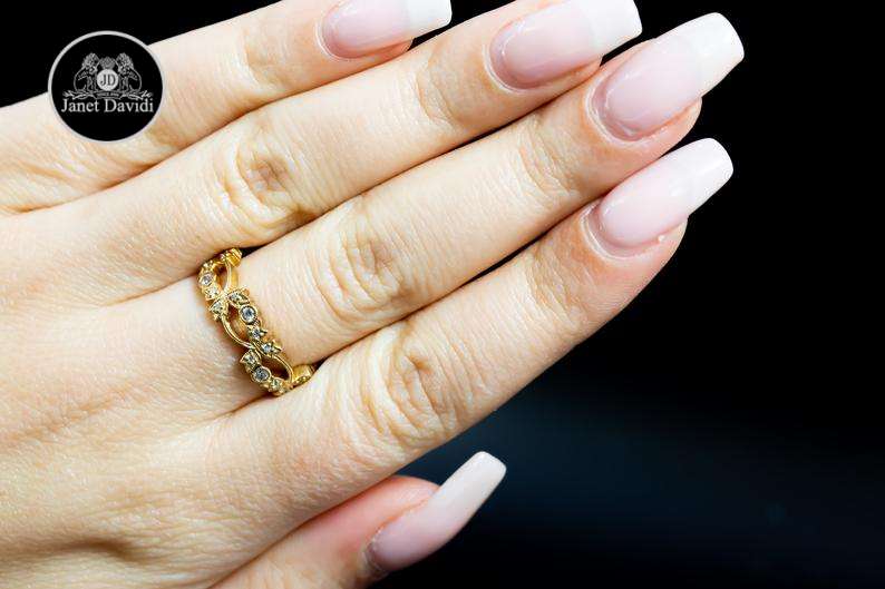 1 review for Leaf Diamond Stackable Wedding Ring ID:9895