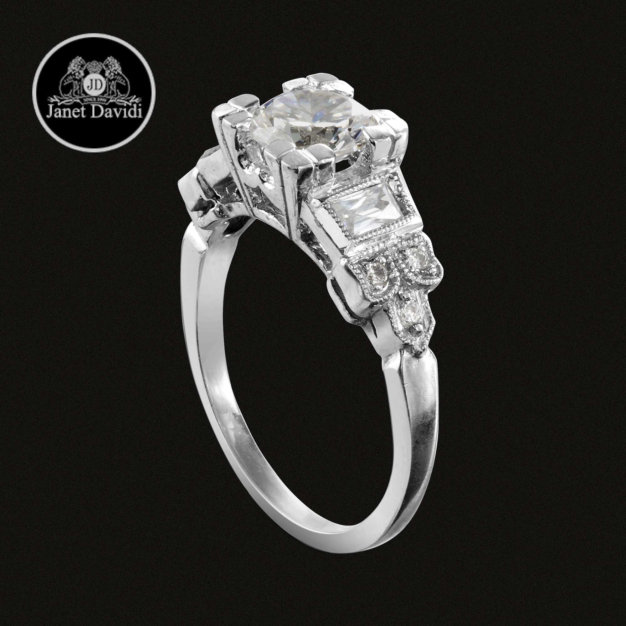 18K White Gold Or Platinum Natural Diamond Milgrain-ENGAGEMENT RINGS