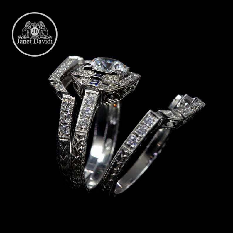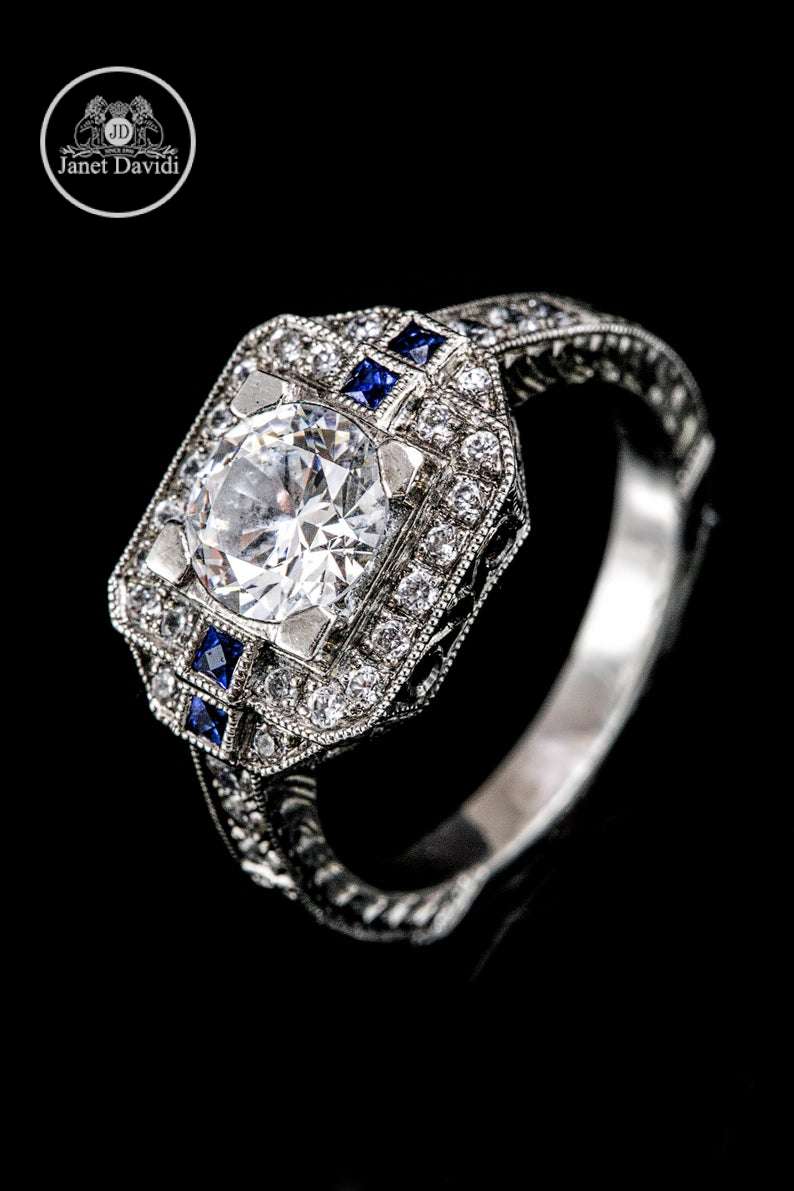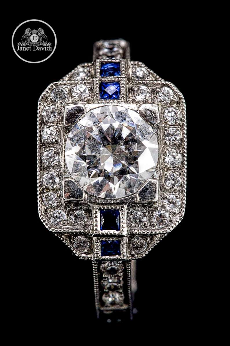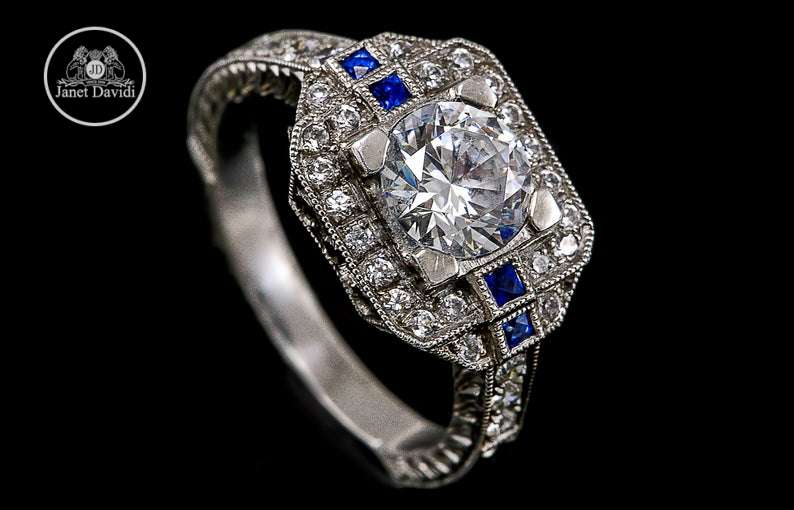 Sapphire Diamond Art Deco-ENGAGEMENT RINGS