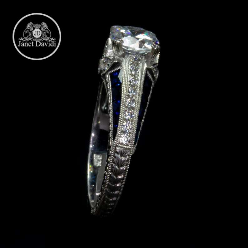 Edwardian Style Antique Inspired Engagement Ring/WG Genuine Blue Sapphire and Diamond Mill grained and Engraved Engagement Ring/Setting Only