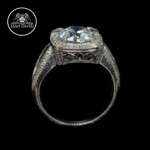This Edwardian style engagement ring is truly a gift for your beloved. The center stone is encased with intricately placed diamonds and is tied with a ribbon of love.