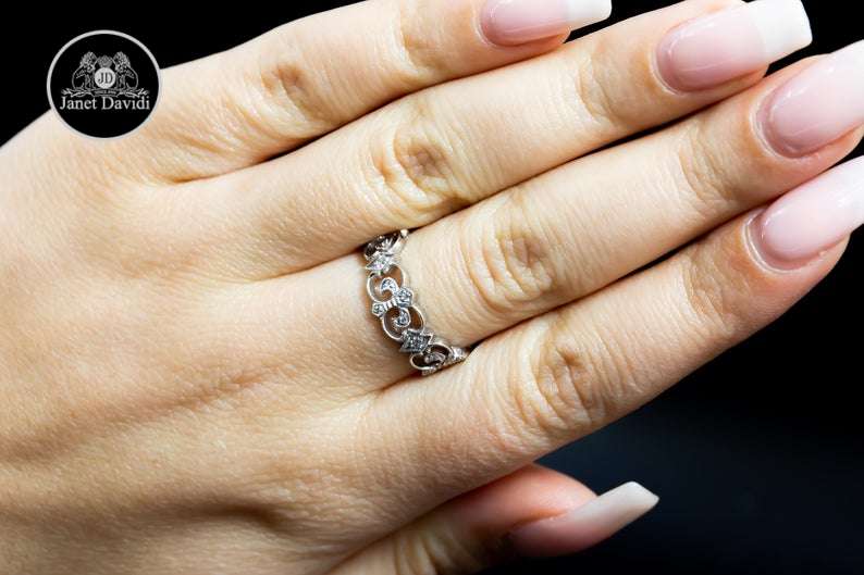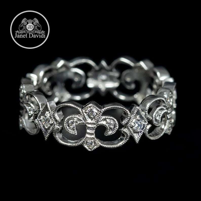 Antique Inspired Edwardian Style Wide Stackable Eternity Wedding Ring/White Gold Engraved Diamond Wide Eternity Ring/Wedding Band/Wide Band